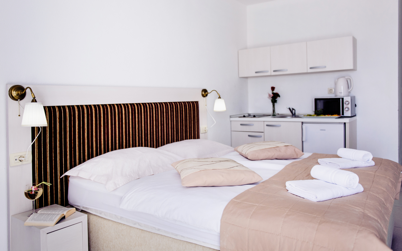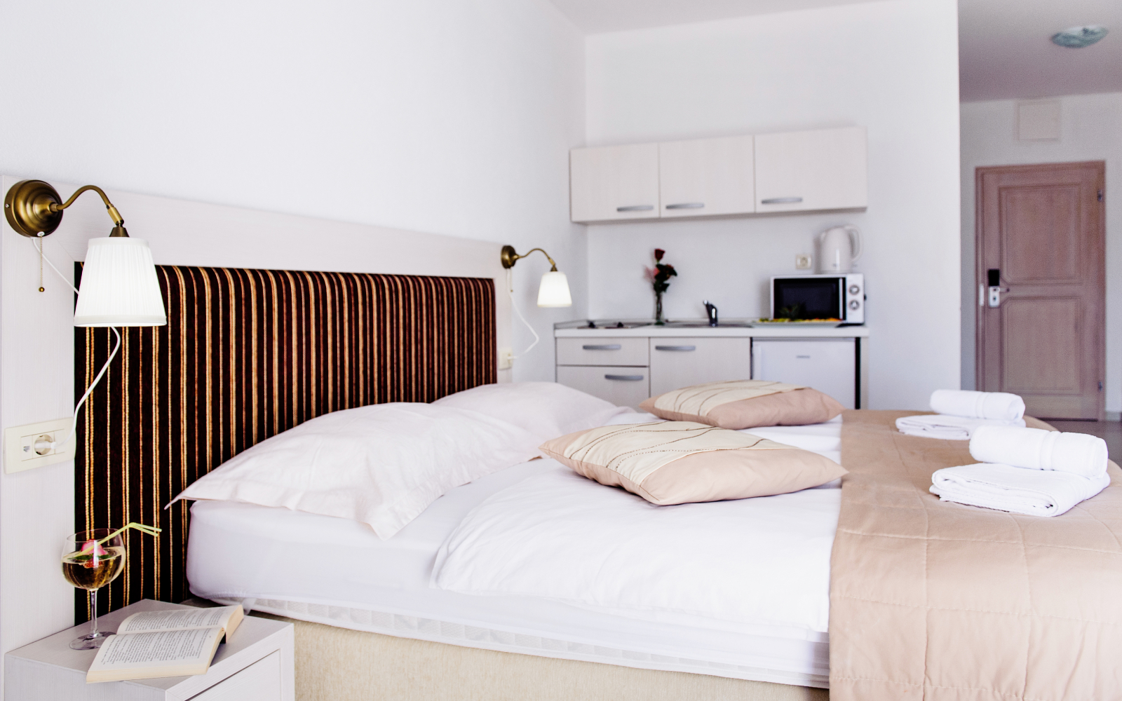 This elegantly decorated studio features air conditioning, a fully equipped kitchenette, a 23 ft² bathroom and a furnished balcony with a seating area.
